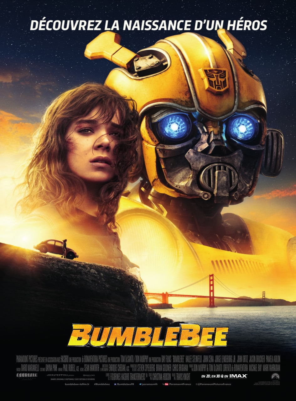 Synopsis: 1987. Alors qu’il est en fuite, l’Autobot Bumblebee trouve refuge dans la décharge d’une petite ville balnéaire de Californie. Il est découvert, brisé et couvert de blessures de guerre, par Charlie, une ado qui approche de ses 18 ans et cherche sa place dans le monde. Et quand elle le met en marche, elle se rend vite compte qu’il ne s’agit pas d’une voiture jaune ordinaire.