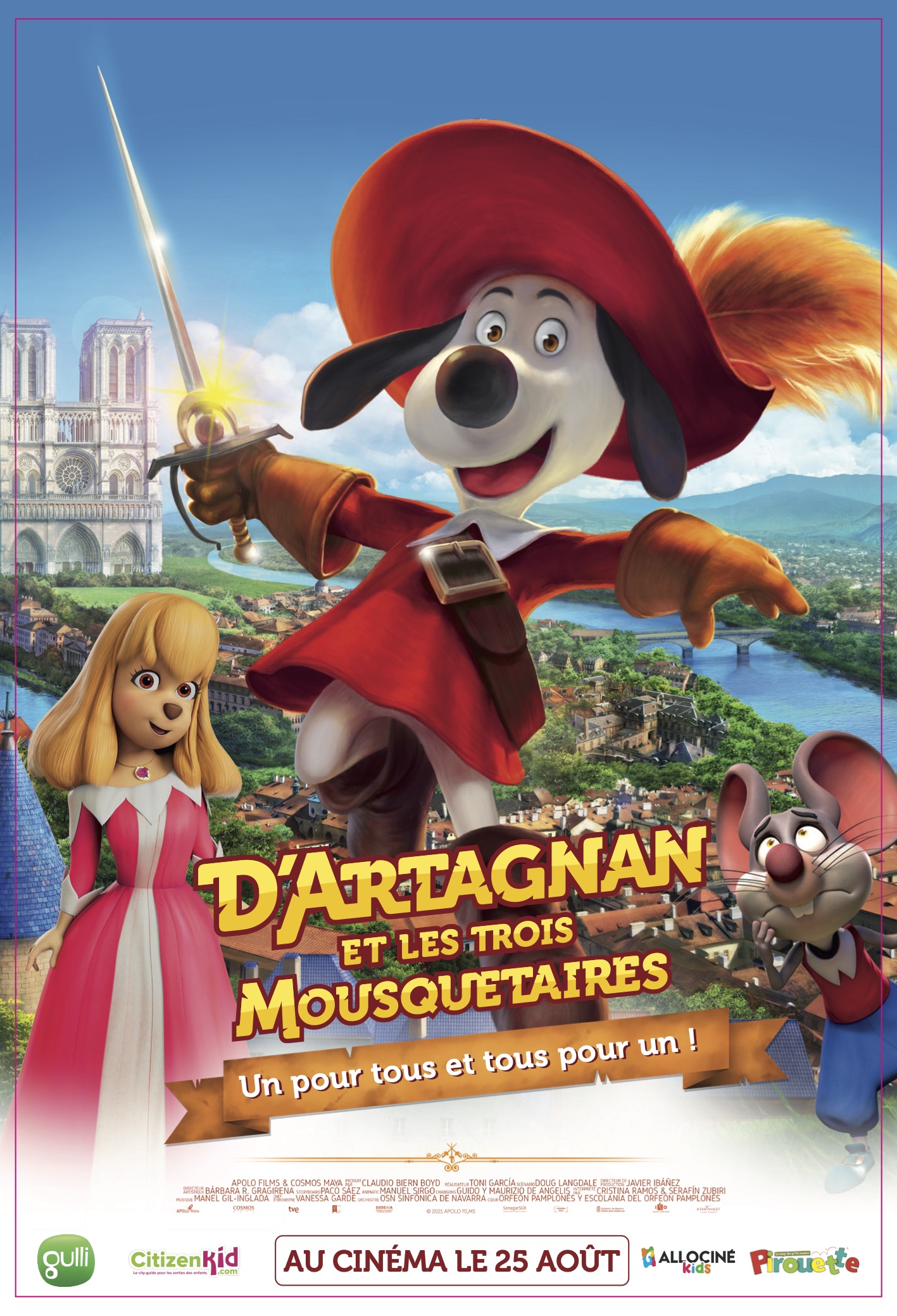 Synopsis : Le jeune D’Artagnan quitte sa Gascogne natale pour se rendre à Paris avec pour ambition de devenir Mousquetaire du Roi. À peine arrivé, il tombe sous le charme de la douce Constance, la dame de confiance de la Reine… Intrépide et ne refusant aucun combat, il se rend vite indispensable auprès des trois mousquetaires, Athos, Porthos et Aramis qui l’intègrent dans la célèbre garde du Roi. Ensemble ils vont devoir déjouer un complot imaginé par le Cardinal de Richelieu et retrouver le collier de la Reine !