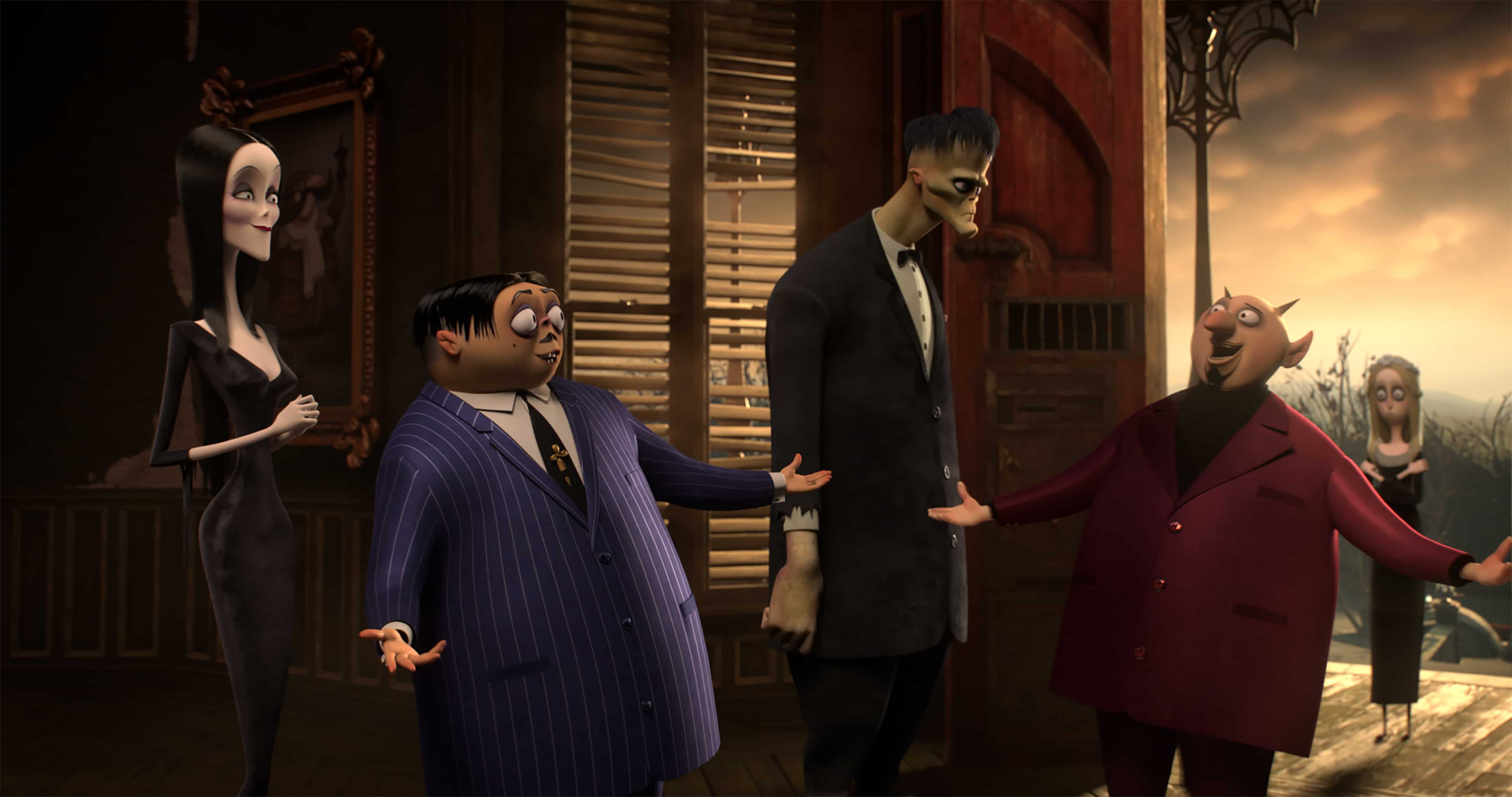 Inspiré des bandes dessinées de Charles Addams, cette nouvelle adaptation change de cadre, en allant à Westfield, dans le New Jersey, où leur créateur a grandi. Greg Tiernan et Conrad Vernon ont fait appel à Oscar Isaac pour la voix de Gomez. L’acteur avait été demandé dans le rôle de Gomez par des fans, et au final il se retrouve à prêter sa voix.
