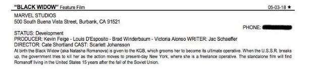 Depuis Iron Man 2, beaucoup de fans demandaient un film autonome de l’agent russe, et ils ont été entendus par Marvel. Annoncé plus tôt cette année, Cate SHortland est prévue à la direction du long métrage, mais aucune fenêtre de sortie n’a été indiquée. Aujourd’hui, ce futur film dévoile son synopsis par l’intermédiaire d’un article, et nous révèle qu’on aura plusieurs moments différents de la vie de Natasha Roumanoff.