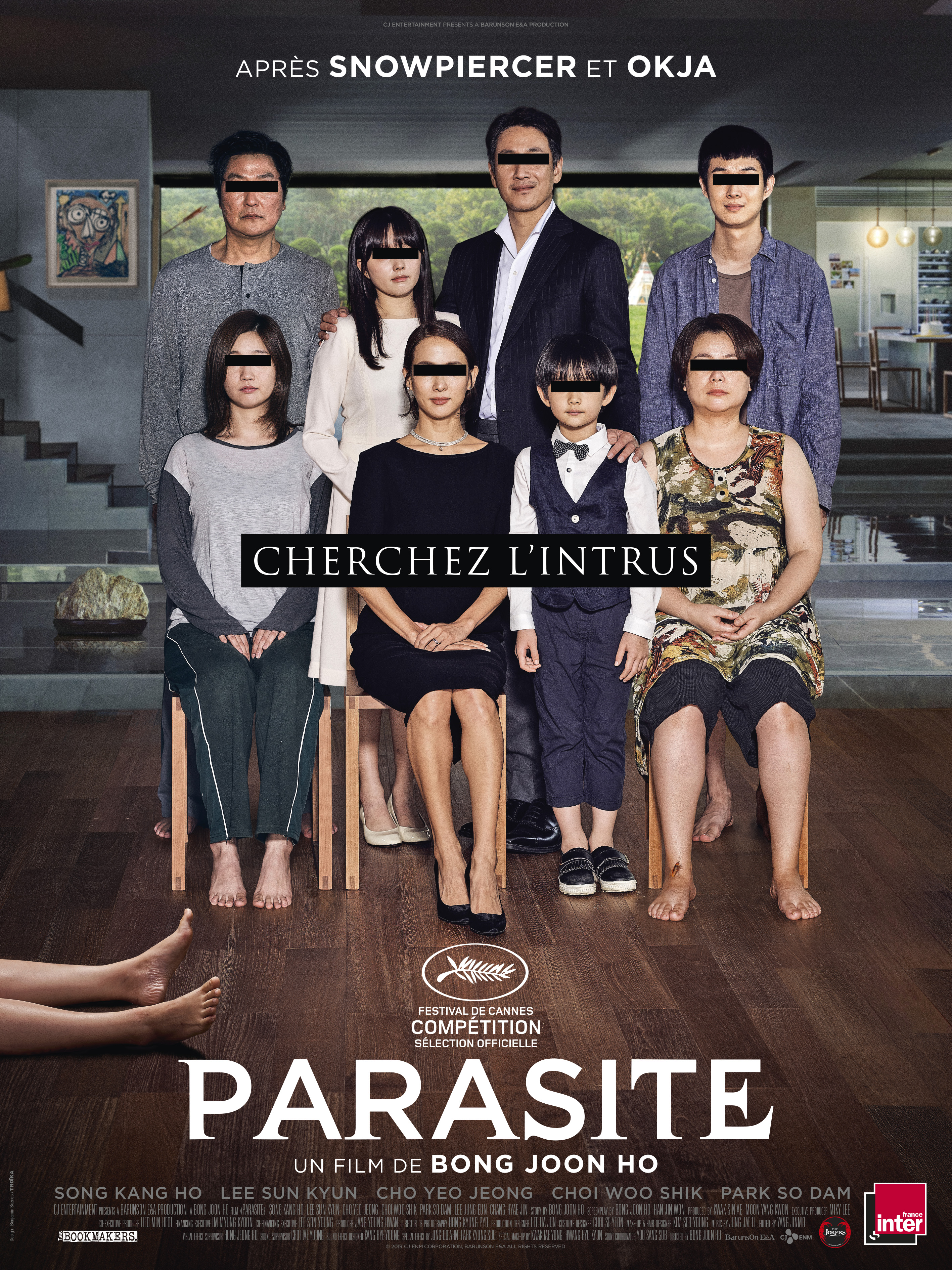 Synopsis : Toute la famille de Ki-taek est au chômage. Elle s’intéresse particulièrement au train de vie de la richissime famille Park. Mais un incident se produit et les 2 familles se retrouvent mêlées, sans le savoir, à une bien étrange histoire…