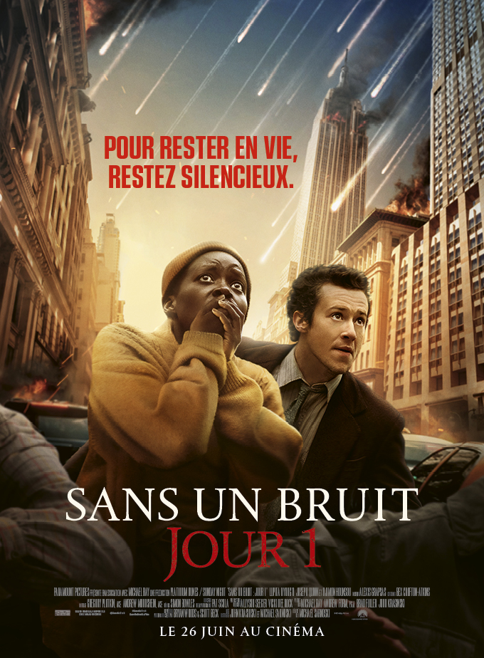Après Sans un bruit 1 et Sans un bruit 2, la franchise revient dans un préquel. Ce n’est plus réalisé par John Krasinski mais Michael Sarnoski (PIG). Cependant, initialement, il était prévu que Jeff Nichols, qui a récemment sorti « Bikeriders » (actuellement dans les salles), devait être aux commandes. Il a quitté suite à un autre projet. Aujourd’hui, Sarnoski donne vie à ce jour initial des évènements, qui est le point de départ des évènements de « Sans un bruit ». Cette franchise est très lucrative, Sans un bruit avec son budget de 17 millions de dollars en a rapporté 340 millions au box-office international. Trois ans plus tard, Sans un bruit 2 a récolté 297 millions. Néanmoins, il a eu la difficulté de sortir durant la pandémie, ce qu’il ne l’avait pas aider pour performer au box office. Sans un bruit Jour 1 avec Lupita Nyong’o et Joseph Quinn arrive dans les salles, mais est-ce qu’il est réussi et va faire mieux que la franchise d’origine ? Voici mon avis.