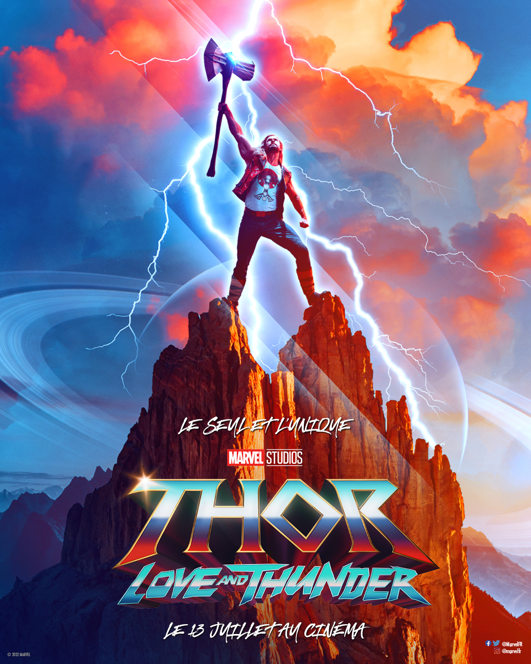 Synopsis : Thor s’engage dans une quête inédite, celle de sa propre sérénité. Mais sa retraite est interrompue par l’apparition de Gorr le Boucher, un tueur galactique qui s’est donné pour mission d’exterminer les dieux. Pour affronter cette menace, Thor fait équipe avec Valkyrie, Korg et son ex-petite amie, Jane Foster, qui – à sa grande surprise – manie son marteau, Mjolnir, aussi bien que lui. Nos héros vont se lancer ensemble dans une aventure cosmique éprouvante pour tenter de cerner les causes de l’acharnement de Gorr, le Boucher des dieux et l’arrêter avant qu’il ne soit trop tard.