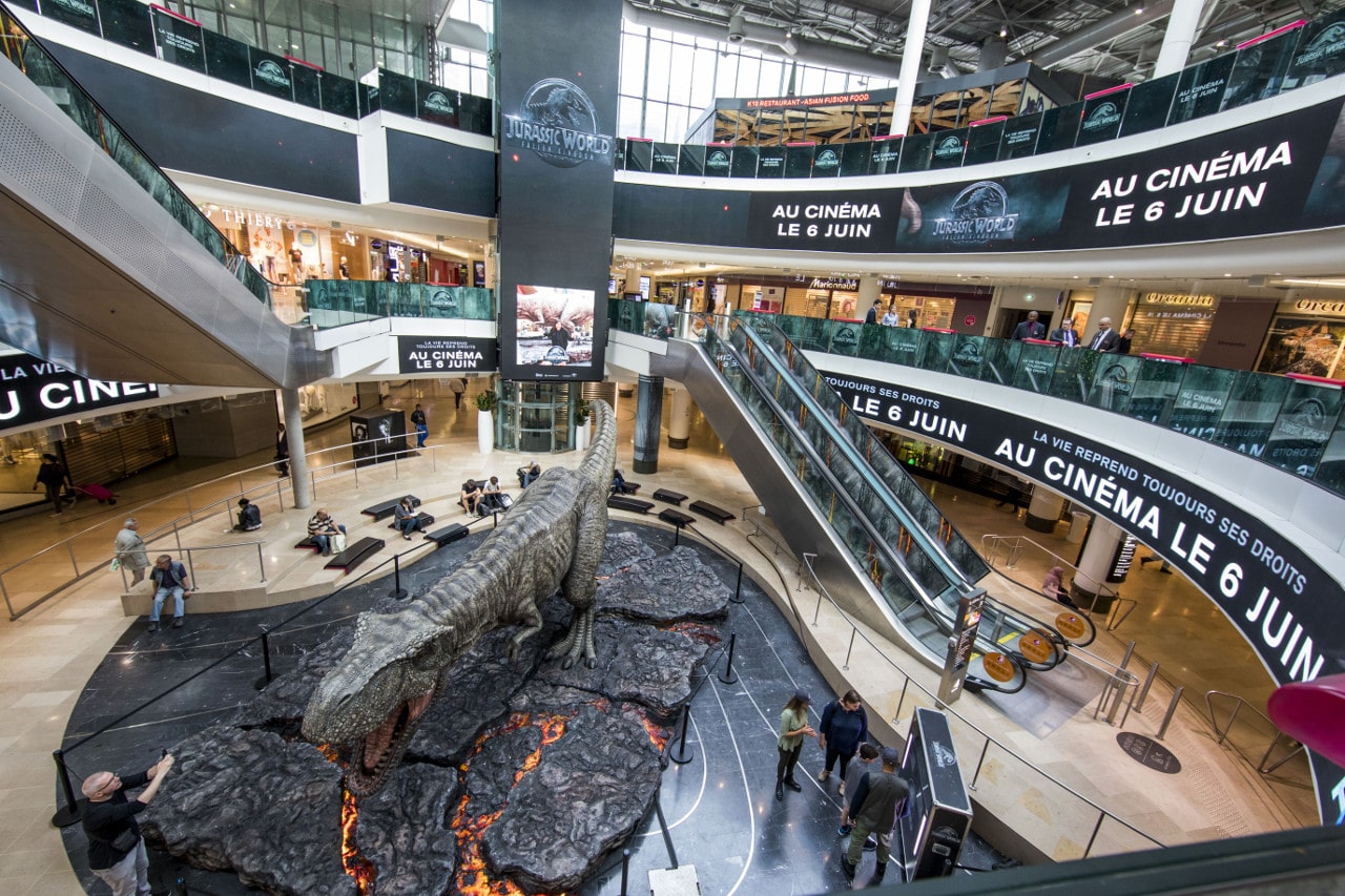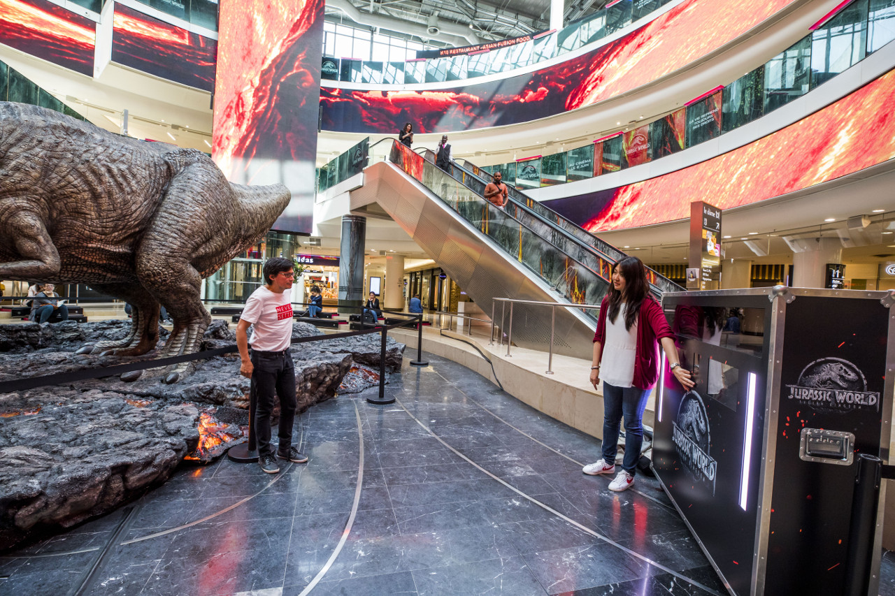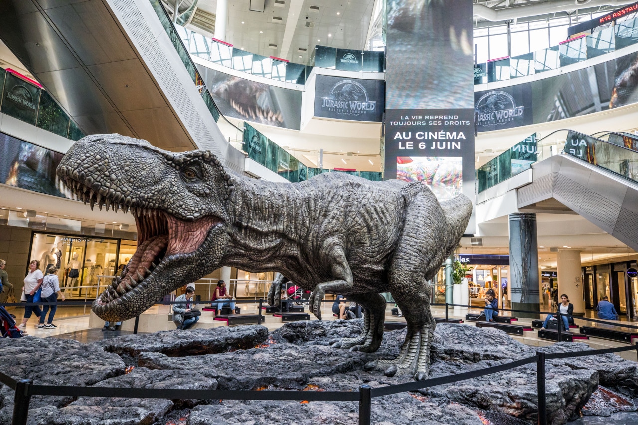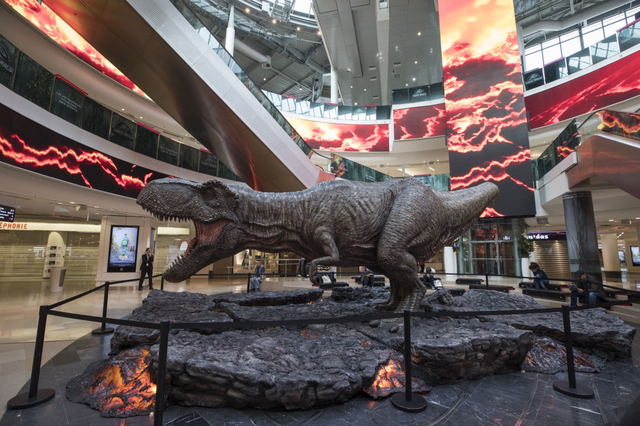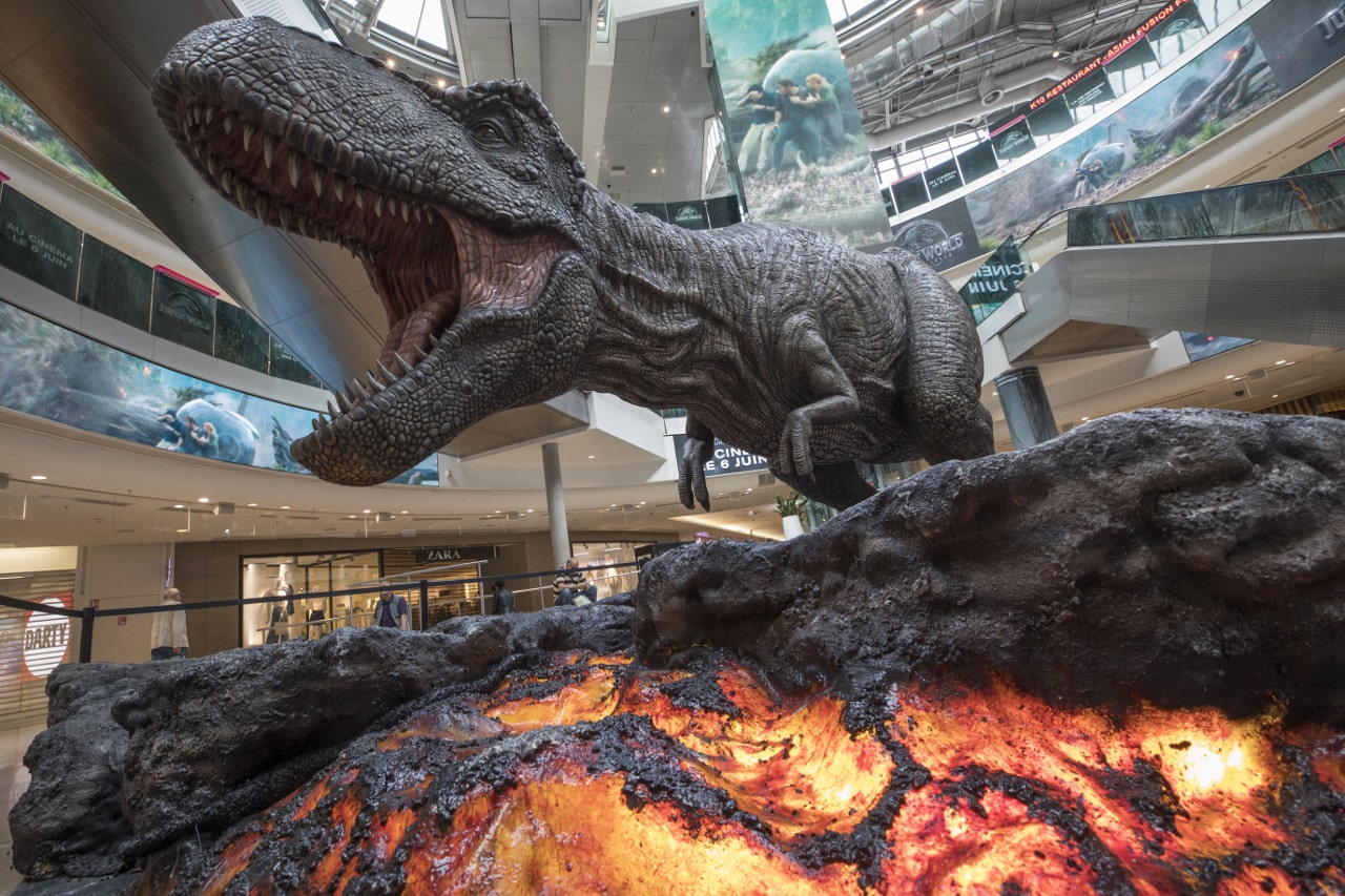 Le 6 juin prochain sort Jurassic World The Fallen Kingdom, et après l’exposition qui a actuellement lieu à la cité du cinéma jusqu’au 2 septembre prochain, un autre évènement se déroule actuellement. Jusqu’au 10 juin et depuis le 28 mai, Universal a installé une statue d’un T-Rex (4m x 11m) sculptée et peinte à la main, avec un décor aux couleurs de la saga Jurassic dans le centre commercial Les 4 Temps de La Défense. Si vous y allez vous allez pouvoir vous prendre en photo à 180° avec le T-Rex et voir votre photo projetée sur l’écran géant du centre commercial.
