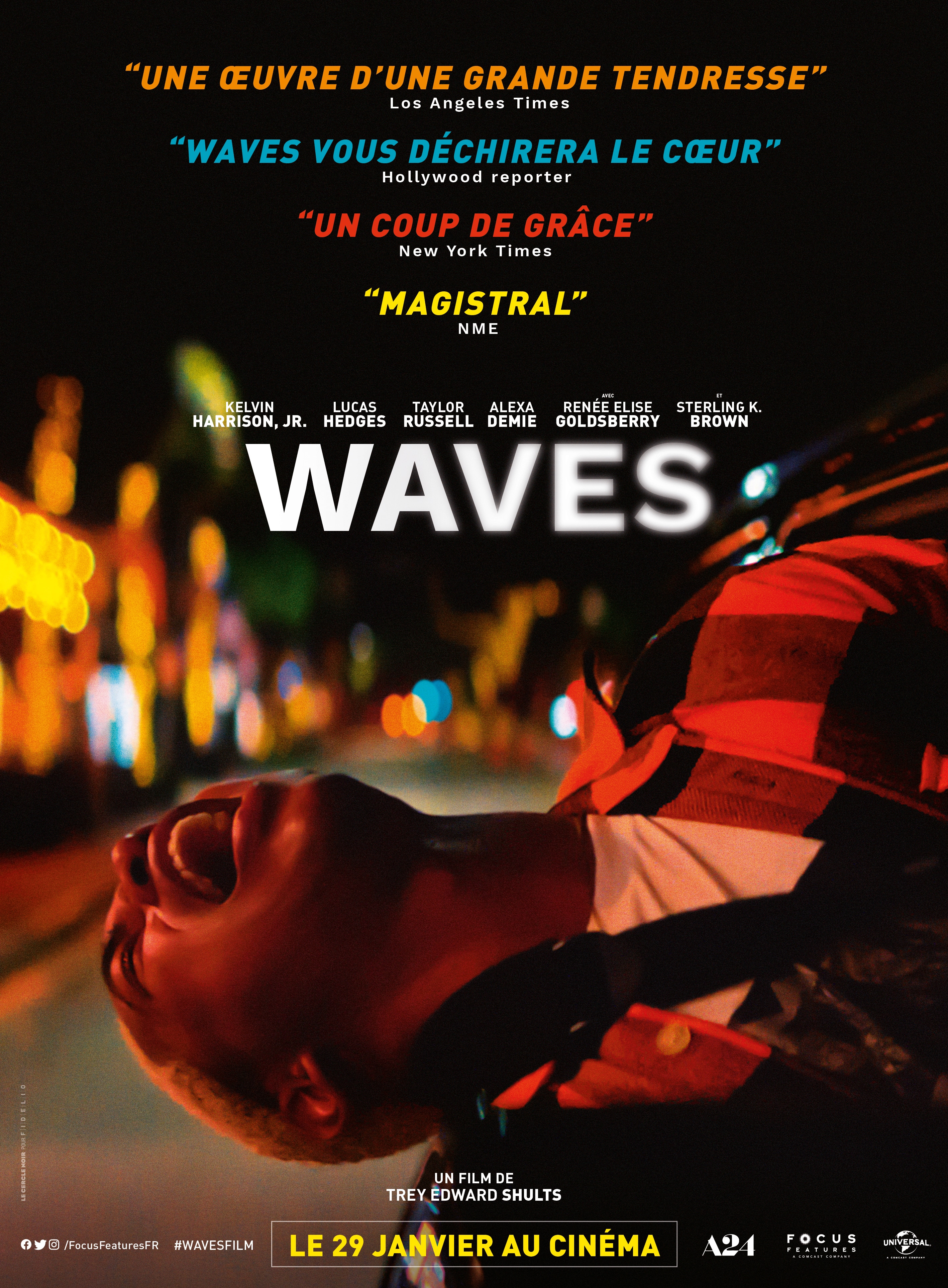 Synopsis : L’intrigue de WAVES se déroule au cœur des paysages exceptionnels du sud de la Floride. Servi par une distribution remarquable où se côtoient des acteurs nommés aux Oscars aussi bien que des nouveaux venus, le film retrace le parcours des membres d’une famille afro-américaine, menée par un patriarche protecteur, mais très exigeant, sur les eaux troubles du malheur et du deuil. Un chemin douloureux qui finira par les rassembler sur les rives de l’amour et du pardon, si tant est qu’ils parviennent à accepter de lâcher prise.